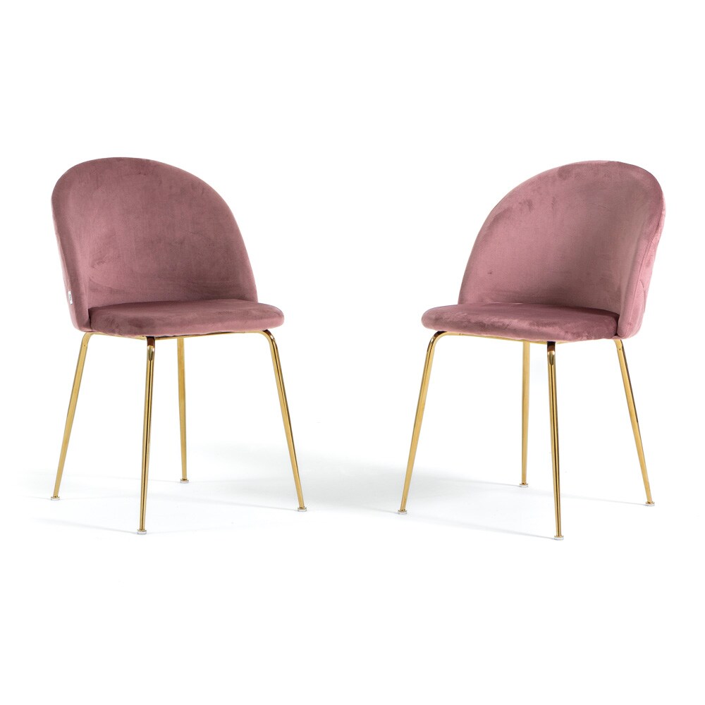 RATTATAN Set aus 2 Innenstühlen aus Samt, gepolstert, mit Metallbeinen, elegantes Design für Esszimmer, Bar und Restaurant – Sara – Rosa Blush/Gold