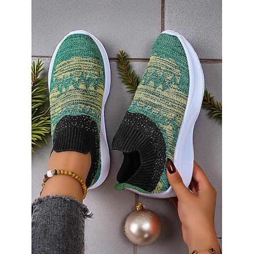 scarpe da ginnastica da donna in maglia rossa e verde: scarpe da corsa leggere e traspiranti, slip-on, per sport, passeggiate, feste di Natale e outfit casual