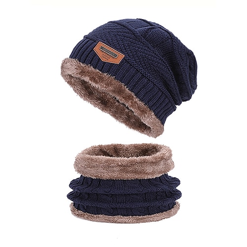 Set unisex con berretto lavorato a maglia e scaldacollo, foderato in pile, caldo invernale, 2 pezzi, comodo regalo di Natale per sport all'aria aperta, sci e uso quotidiano