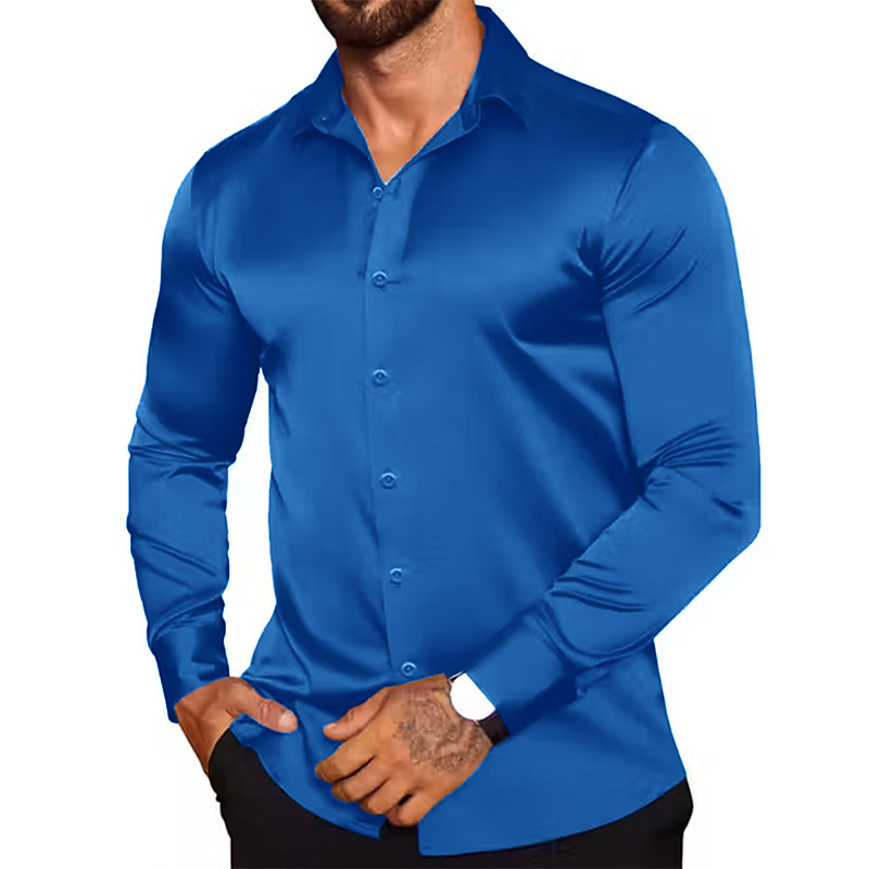 Men's Shirt Silk Like Satin Shirt Dress Shirt Button Up Shirt Plain Formal Wedding Light Blue Black White Wine Long Sleeve Lapel Spring Fall All Seasons Clothing Apparel
