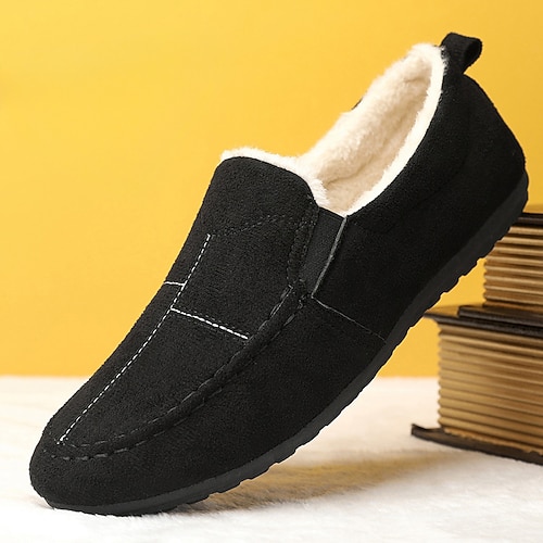 scarpe slip-on da uomo in similpelle nera con fodera in pelliccia - calde e comode per l'inverno