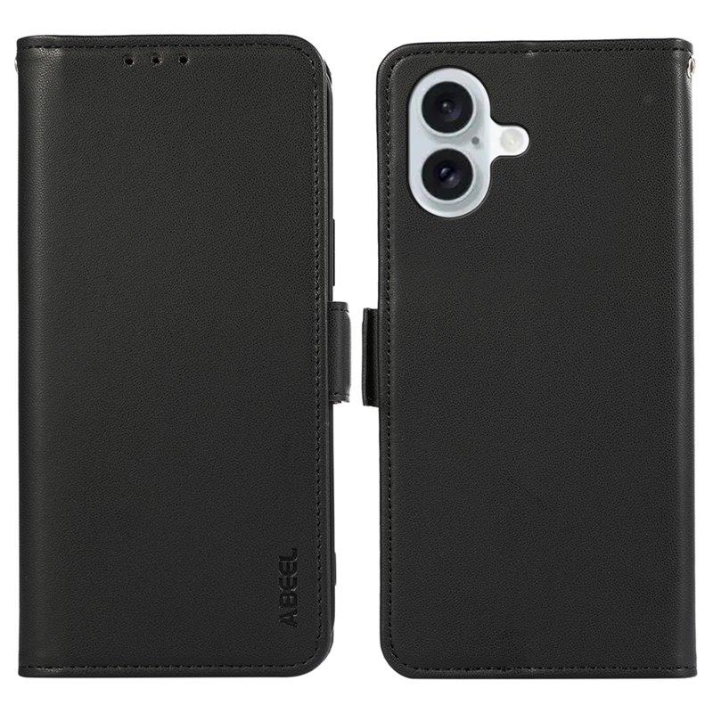 ABEEL Mobilskal till iPhone 16 Plus Äkta Läder + PC + TPU - Svart