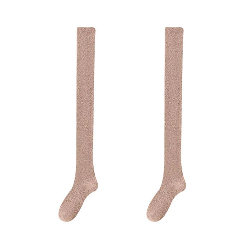 Women Knee High Fuzzy Socks Soft Long Thigh High Warm stockings Cozy Slipper Plush Socks
