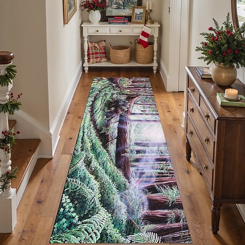 Tappeto corridoio sentiero forestale per cucina morbido tappeto anti-scivolo lavabile in lavatrice tappeto paesaggio naturale in faux cashmere design raggi di sole corridoio di redwood caduto di
