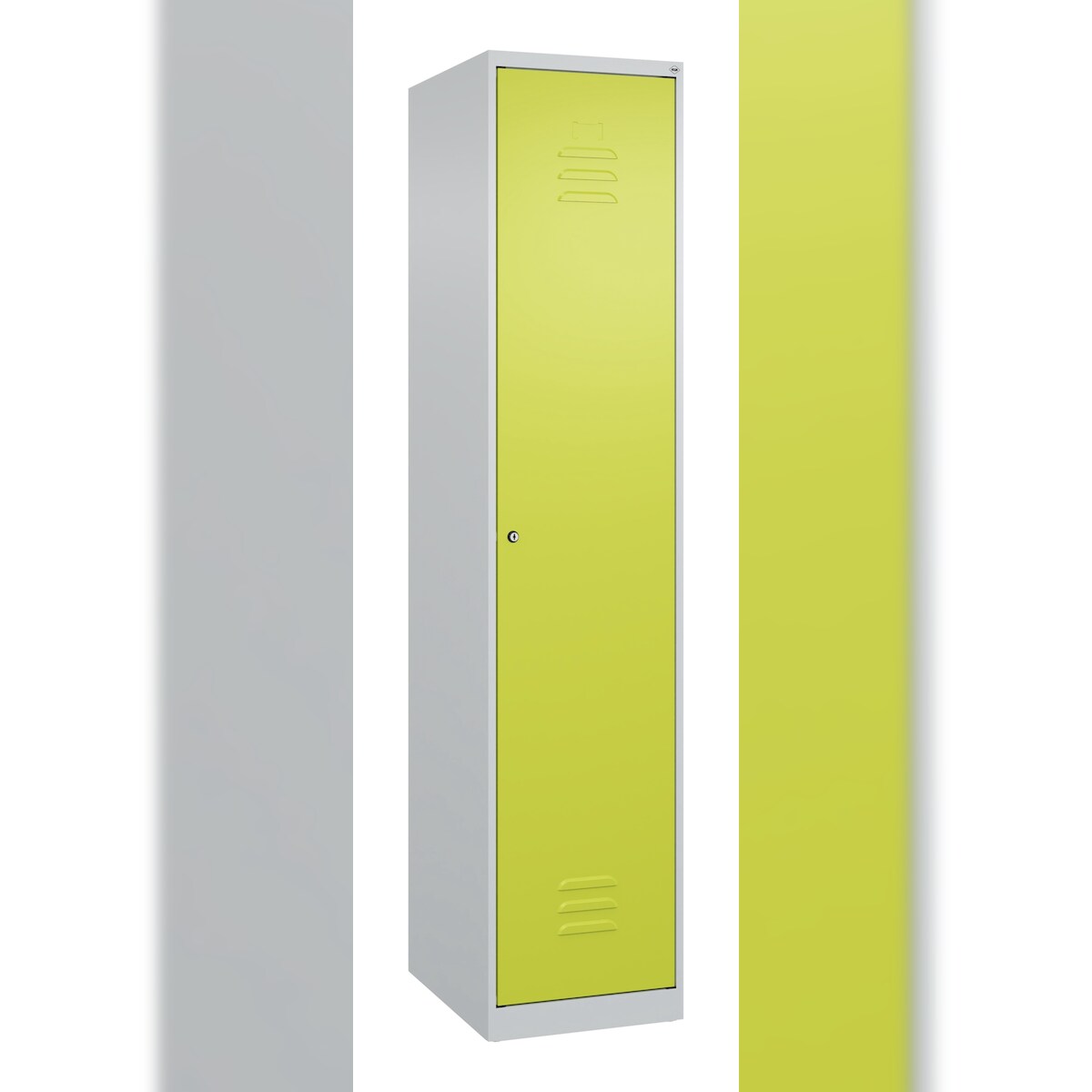 C+P Spind Classic PLUS, 1 Abteil, HxBxT 185x40x50cm, Zylinderschloss, Hellgrau/Clowngrün von PROREGAL