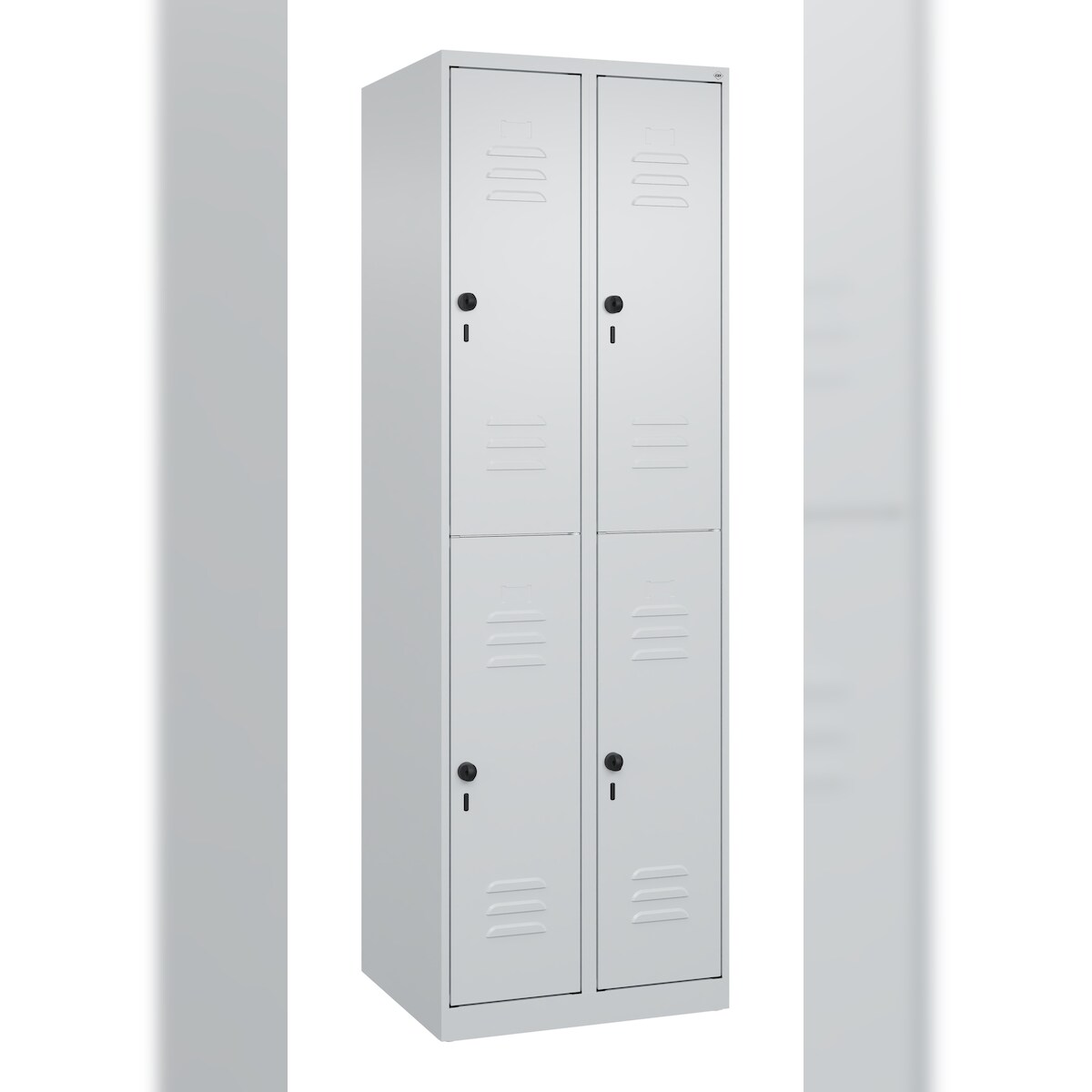 C+P Spind Classic PLUS, 4 Abteile, HxBxT 185x60x50cm, Sicherheitsdrehriegel, Hellgrau/Hellgrau von PROREGAL