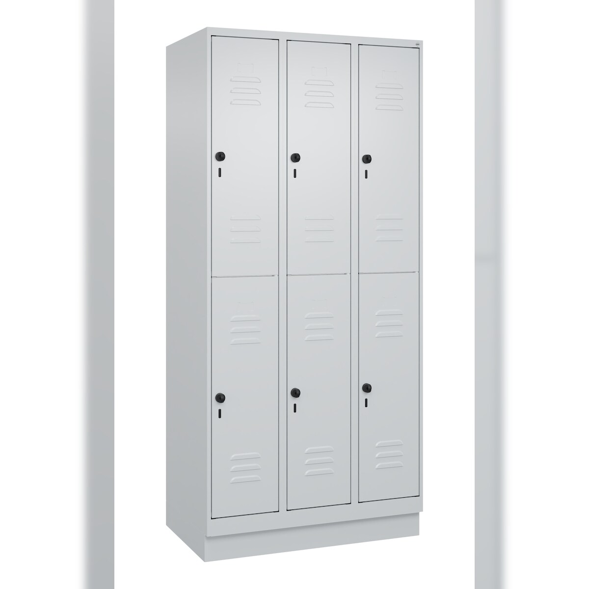 C+P Spind Classic PLUS, Sockel, 6 Abteile, HxBxT 195x90x50cm, Sicherheitsdrehriegel, Hellgrau/Hellgrau von PROREGAL