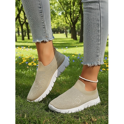 scarpe da ginnastica slip-on da donna con strass rosa - tomaia in Flyknit traspirante, leggere scarpe sportive casual scintillanti per camminare, fare jogging, viaggiare, indossare ogni giorno