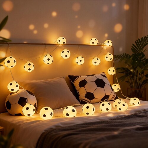 2 luci a forma di pallone da calcio da 2 m e 10 LED – luci a LED bianco caldo con vano batteria, per interni, camera da letto, soggiorno, feste, fan club, decorazioni sportive, decorazioni natalizie e