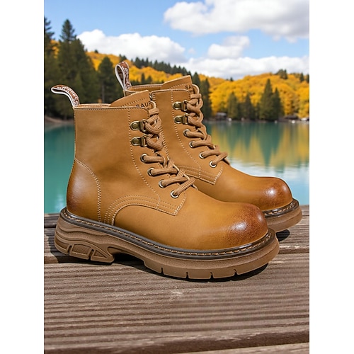 stivali stringati da uomo in similpelle marrone con suola spessa: calzature eleganti e pratiche per uscite informali, lavoro e uso quotidiano