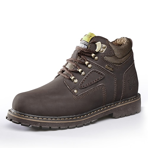 stivali da lavoro da uomo in pelle marrone – scarpe allacciate alla caviglia in pelle di vacchetta vintage con suola robusta per lavori edili, avventure all'aria aperta e abbigliamento casual quotidiano