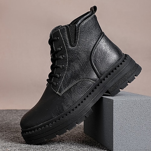 Per uomo Stivali Stivali da Lavoro Camminata Vintage Quotidiano PU Confortevole Stivali a Metà Polpaccio Allacciatura Nero Cachi Autunno Inverno