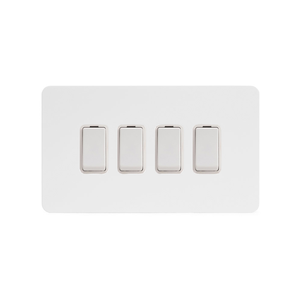 Soho Lighting White Metal Flat Plate 4 Gang Switch With 1 Intermediate (3 x 2 Way Switch with 1 Intermediate) Wht Ins Screwless - Size: H 86mm X W 14