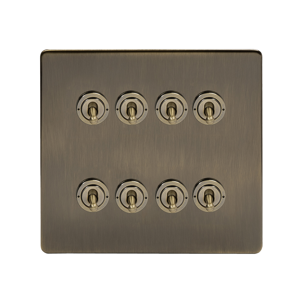 Soho Lighting Antique Brass 8 Gang Toggle Light Switch 20A 2 Way Screwless