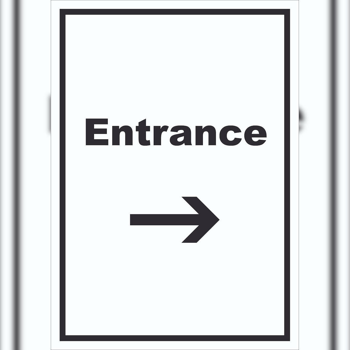 HB-Druck Entrance Schild mit Text und Richtungspfeil rechts Eingang hochkant A3 Rückseite selbstklebend