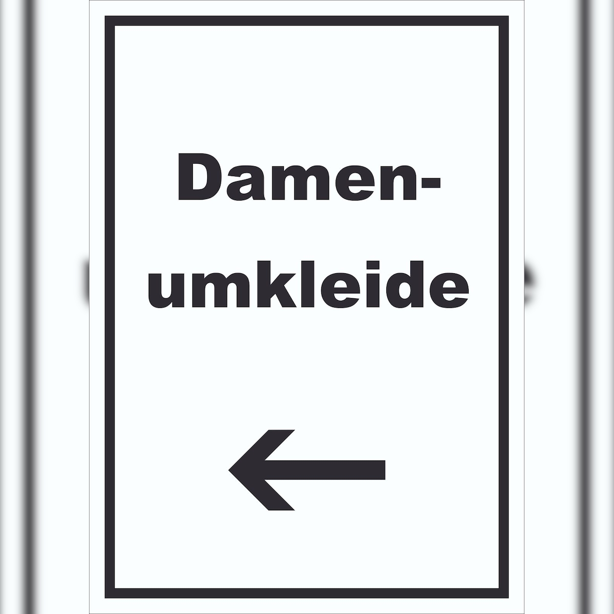 HB-Druck Damenumkleide Schild mit Text und Richtungspfeil links hochkant A2 Rückseite selbstklebend
