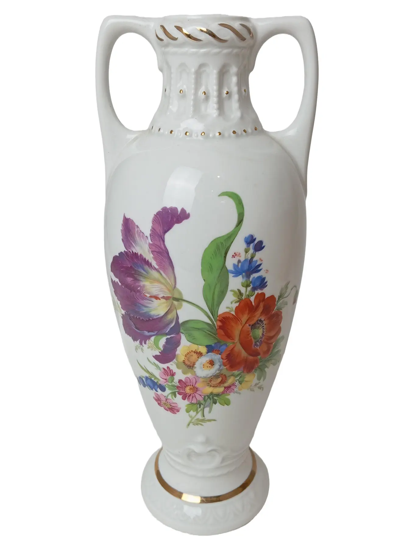 THÜRINGER PORZELLANMANUFAKTUR Vase 28 cm Weiß Bunt Blumenmuster