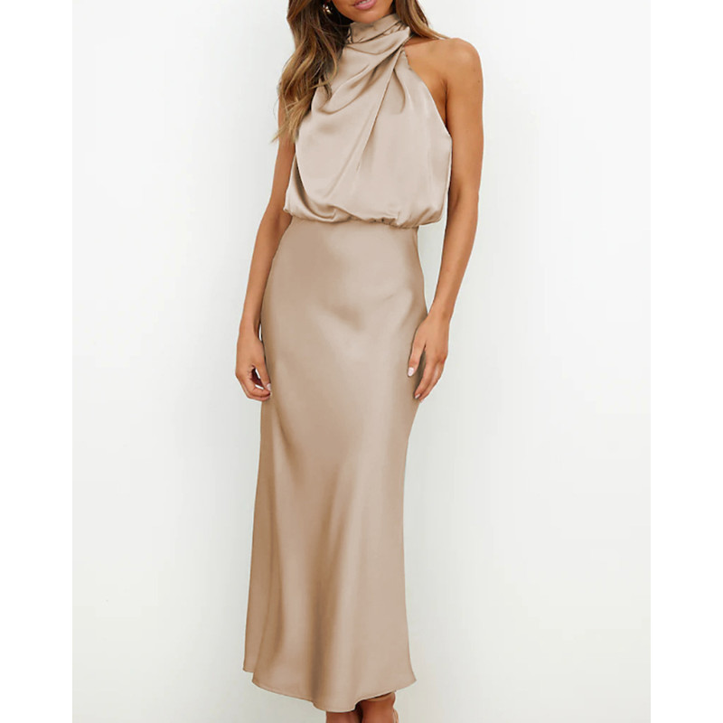 Women's Long Dress Maxi Dress Satin Dress Prom Dress Party Dress Elegant Fashion Modern Evening Party Party Special Occasion Regular Fit Plain Sleeveless Crew Neck Green Apricot Spring Fall Winter