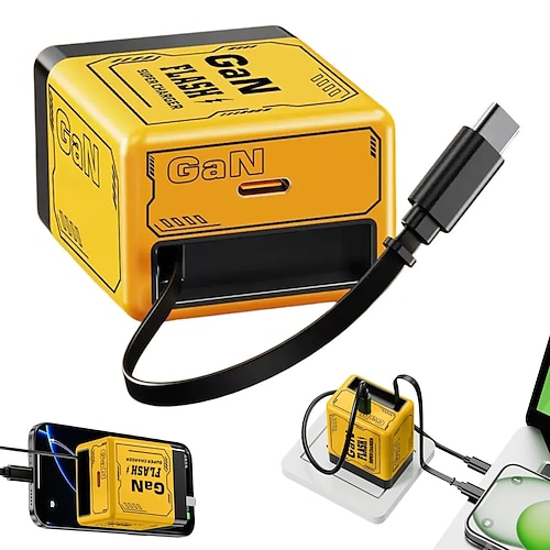 120-W-Gan-Ladegerät, 2-in-1-USB-C-Kabel mit Einzugsmechanismus und USB-Anschlüssen, Schnellladefunktion für Smartphone/Laptop, tragbarer Reisestecker