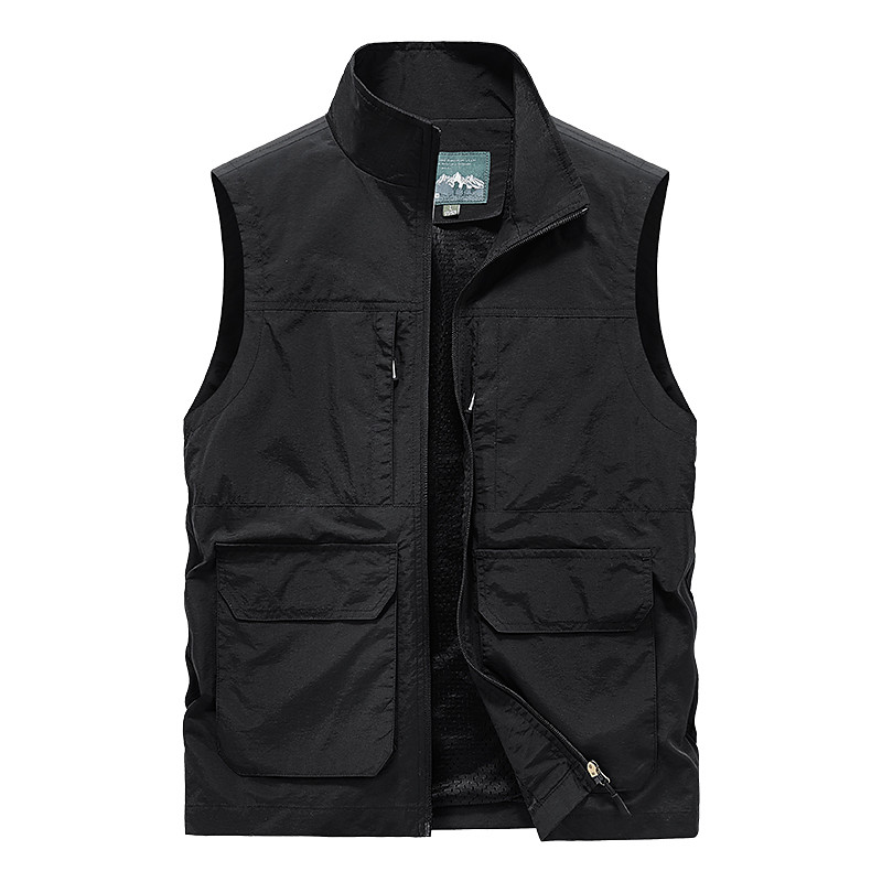 Men's Fishing Vest Sleeveless Vest Outdoor Modern Contemporary All Seasons Multi Pocket Chinlon Outdoor Solid / Plain Color Zipper Standing Collar Standard Fit Black ash-colored khaki Army Green Vest