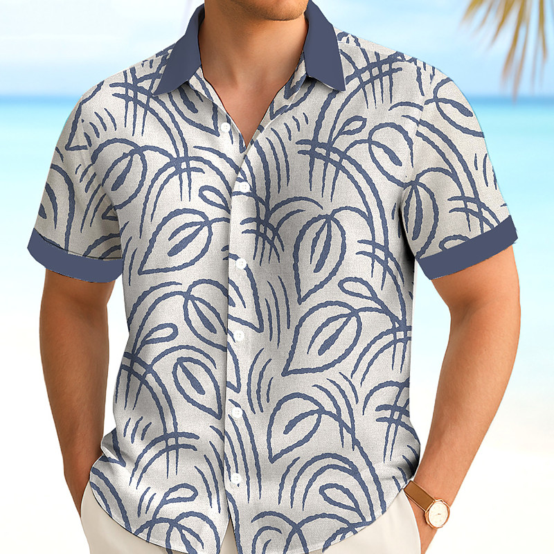 Men's Tropical Leaf Summer Hawaiian Shirt Button Up Shirt Aloha Shirt Short Sleeve Hawaiian Vacation Beach Wear Summer Spring Turndown 3D Print Collared Shirts Light Green Blue Green Dark Blue