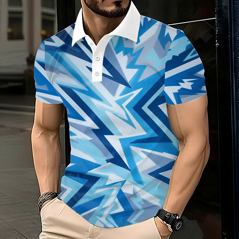 Men's Abstract Geometic Polo Short Sleeve Polo Shirts Lapel Business Casual Business Athleisure 3D Print Buttons Summer Red Blue Green