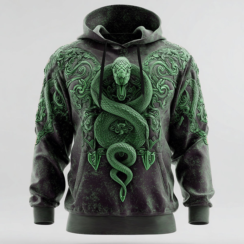 Men's 3D Snake Hoodie Sweatshirt Cool Party Crew Neck Club Streetwear Blue Green Drawstring Fall Winter Designer