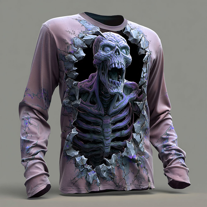 Halloween Men's 3D Zombies Sweatshirt Punk Party Crew Neck Vacation Dark Green Purple Crewneck 3D All Seasons Designer