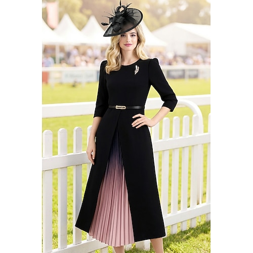 Linea ad A Abito Lunghezza Tè Vestito da Festa Abito da Cocktail Abito da invitata a nozze Abito da cerimonia per signora Manica 3/4 Collo gioiello Elegante Vintage Festa Ospite di nozze Ferie Serata