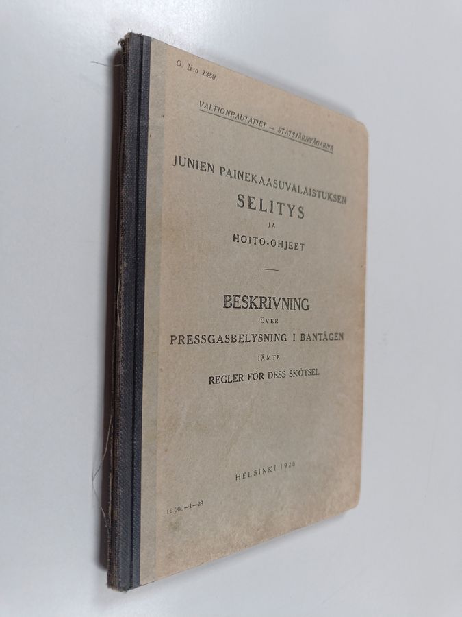Junien painekaasuvalaistuksen selitys ja hoito-ohjeet = Beskrivning över pressgasbelysning i bantågen jämte regler för dess skötsel