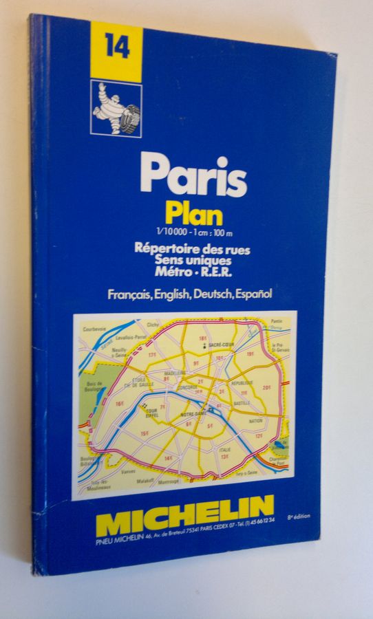 Paris: Plan 1/10 000 - 1cm:100m : Repertoire des rues, Sens uniques, Metro, R.E.R.
