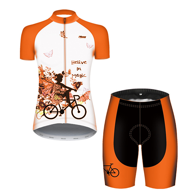Women's Cycling Jersey with Shorts Short Sleeve Mountain Bike MTB Road Bike Cycling Blue Yellow Pink Butterfly Floral Botanical Bike Reflective Strips Sports Clothing Apparel