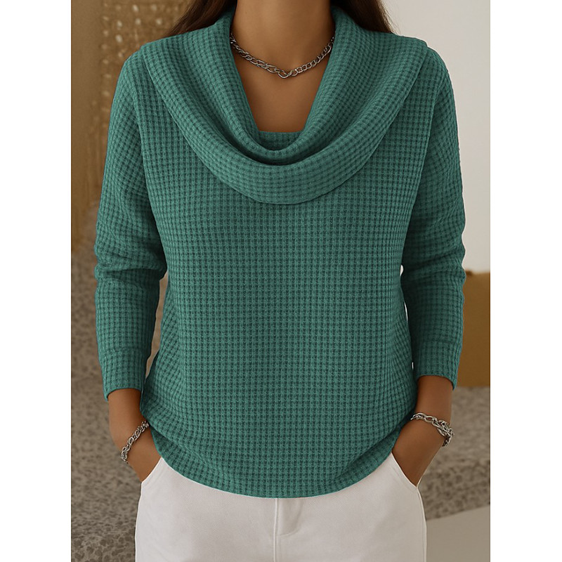 Women's Waffle Grid Shirt Vintage Tropical Stylish Long Sleeve Cowl Neck Regular Tops Black Yellow Blue Green Gray Spring Fall Winter