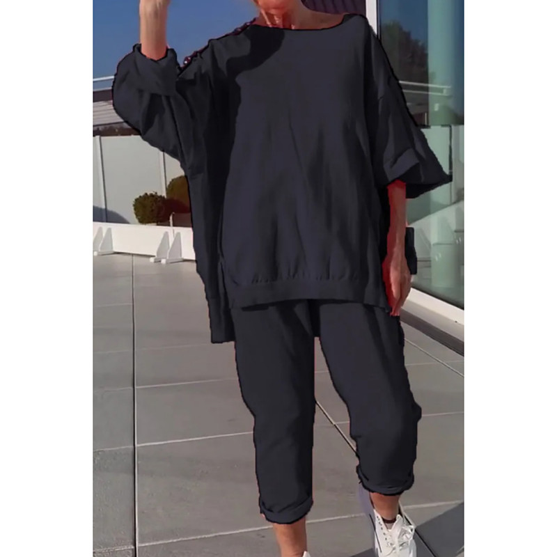 Women's Fashion Streetwear Pants Sets Bolero Top Long Sleeve Crew Neck Plain Casual Daily Outdoor Black Yellow Purple Spring Loose Fit