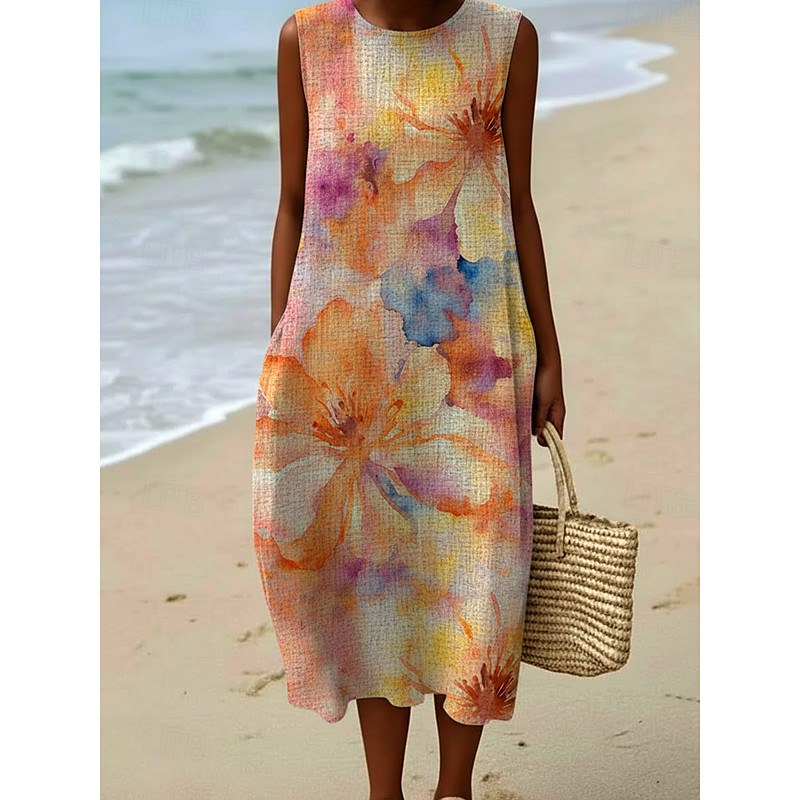 Women's Midi Dress Casual Dress Sundress Shift Dress Fashion Modern Daily Outdoor Vacation Regular Fit Floral Sleeveless Crew Neck Yellow Summer Spring