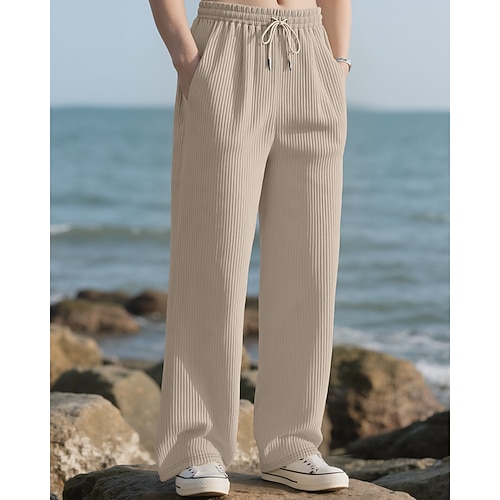 Per donna Gamba larga Pantaloni in velluto a coste Pantaloni Eleganti Streetwear Casual Lunghezza intera Naturale Semplice Tasca Design con Coulisse Elastica Confortevole Streetwear Ferie Weekend