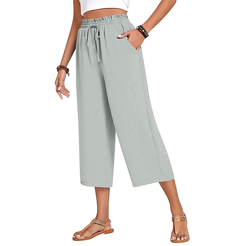 Per donna Gamba larga Pantaloni in cotone e lino Pantaloni Corti Moda Streetwear Semplice Lunghezza alla caviglia Vita Alta Semplice Tasca Taglio alto Gamba Dritta Comodità Traspirabilità Morbido