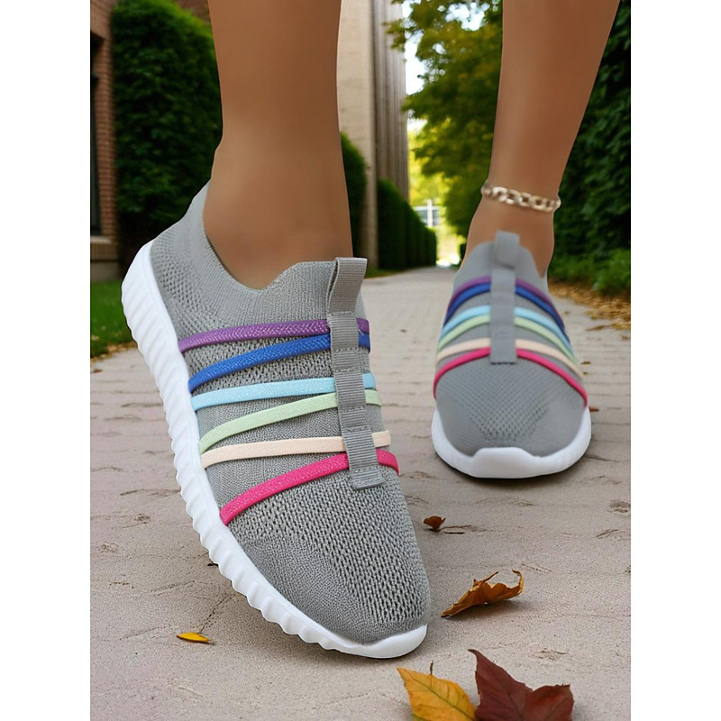 Women's Red Flyknit Slip-On Sneakers – Breathable Lightweight Walking Shoes with Colorful Elastic Straps for Travel, Weekend Outings and Casual Daily Wear