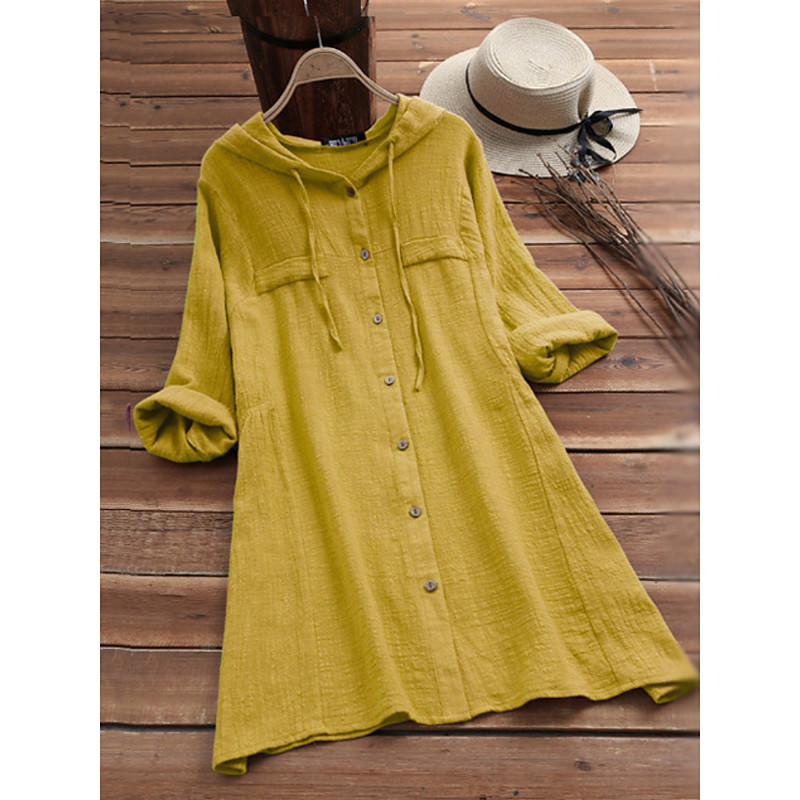 Women's Blouse Solid Color Casual Long Sleeve Hooded Long Tops Daily Pocket Buttons Yellow Wine Fuchsia Gray Summer Fall