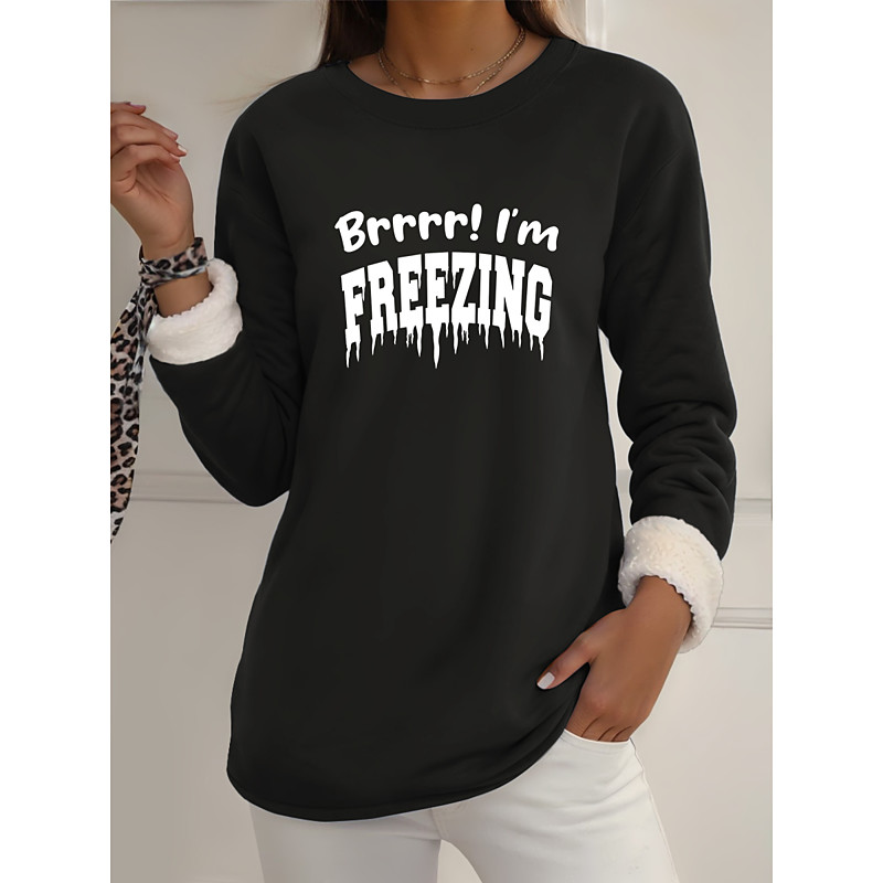 Women's Pullover Sweatshirt Graphic Letter Warm Casual Fuzzy Long Sleeve Crew Neck Round Neck Long Tops Street Casual Light Pink Black Dark Pink Blue Spring Fall Winter
