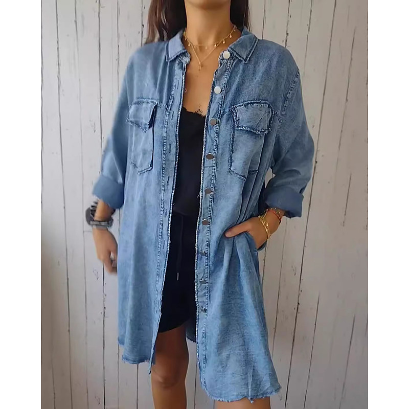 Women's Blouse Plain Vintage Daily Stylish Long Sleeve Shirt Collar Long Tops Daily Holiday Going out Pocket Buttons Blue Black Gray Light Blue Summer Spring Fall