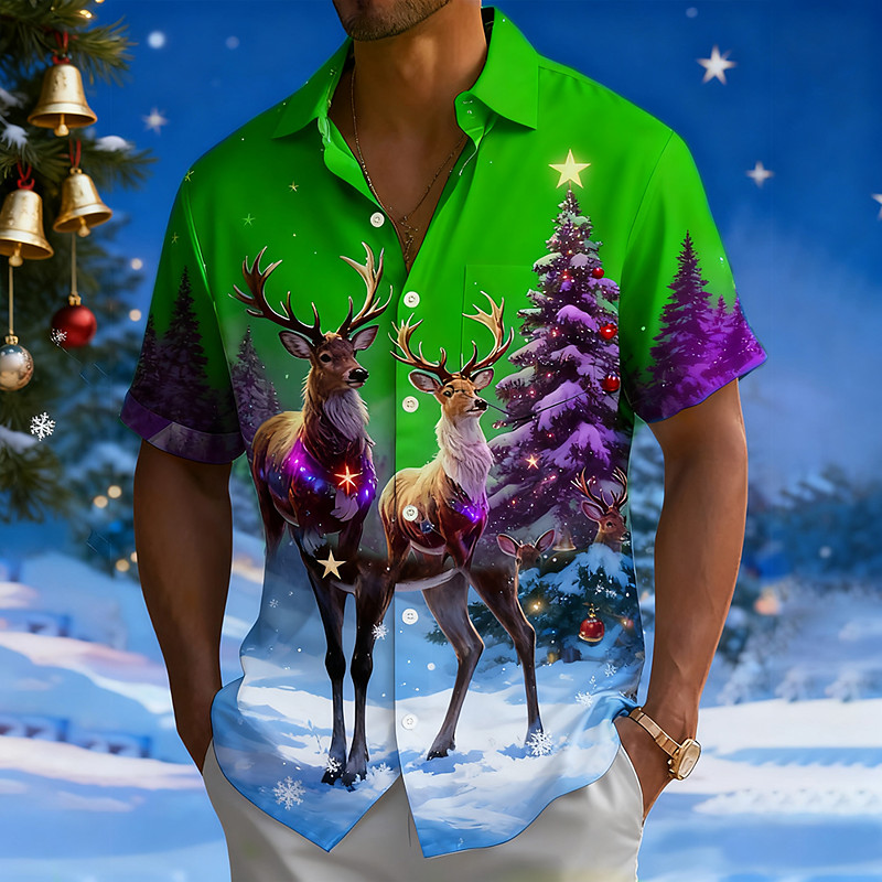 Christmas Men's Christmas Tree Reindeer Snowflake Shirt Button Up Shirt Short Sleeve Fashion Casual Holiday Summer Spring Turndown 3D Print Collared Shirts Front One Pocket Blue Blue 2# Blue 1# Red