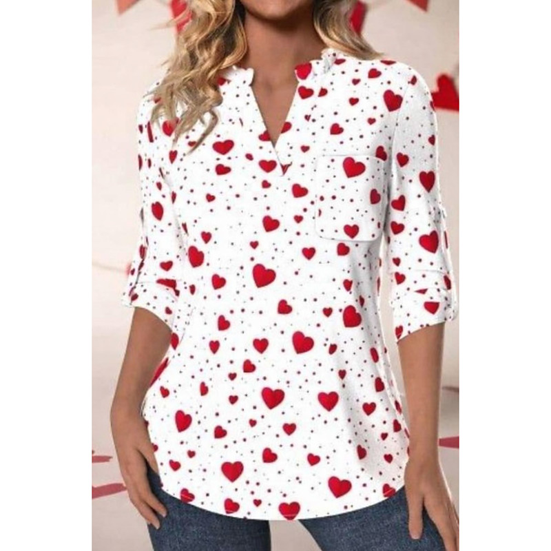 Valentine's Day Women's Shirt Heart Graphic Elegant Cute Daily 3/4 Length Sleeve V Neck Daily Work Holiday Pocket White and Red Summer Spring Fall Winter