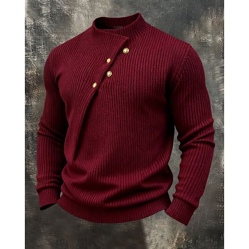 Per uomo Felpa Maglione a maglia Maglione lavorato a maglia A Coste Maglia Top Regolari Bottoni Lavorato a maglia Semplice Dolcevita Moda Streetwear Casuale Abbigliamento quotidiano Abbigliamento