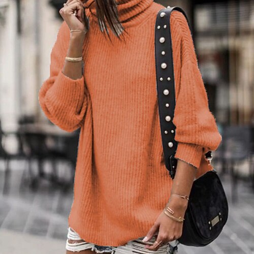 Per donna Felpa Maglione Elegante Moda Streetwear Tinta unica Dolcevita Lavorato a maglia Stampato Manica Lunga Top Regolari Maglia All'aperto Casa Lavoro Rosso bordeaux Nero Autunno Inverno