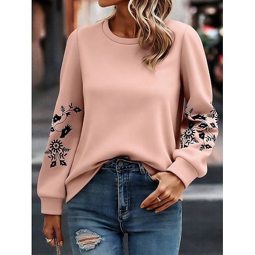 Per donna Felpa Pullover Felpe con cappuccio Floreale Grafico Moda Casual Manica Lunga Girocollo Top Regolari Streetwear Abbigliamento Quotidiano Stampato Rosa Primavera Autunno Inverno
