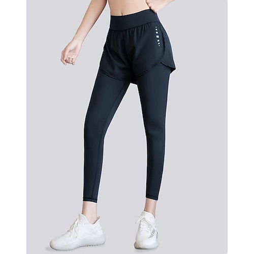 Per donna Pantaloni da allenamento Leggings da corsa Tasche 2 in 1 Vita Alta Pantaloni Athleisure Palestra Allenamento Traspirante Controllo addominale Allenamento Corsa Yoga Vestibilità aderente