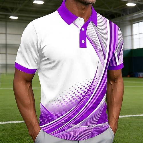 Herren Geometrisch Linie Poloshirts Kurzarm Polo-Shirts Hemden mit Kragen Lässig Athleisure 3D-Druck Knöpfe Frühling Sommer Blau Rote Purpur