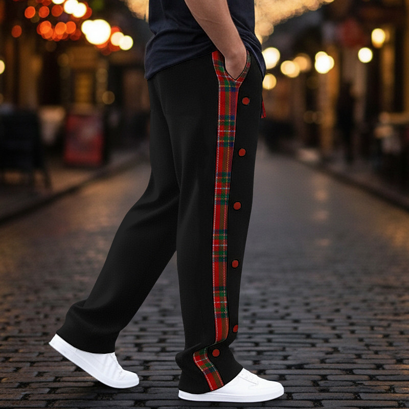 Men's Sweatpants Wide Leg Sweatpants Trousers Baggy Pants Straight Leg Sweatpants Drawstring Pocket Side Stripe Plaid Comfort Breathable Full Length Christmas Daily Holiday Fashion Streetwear Loose