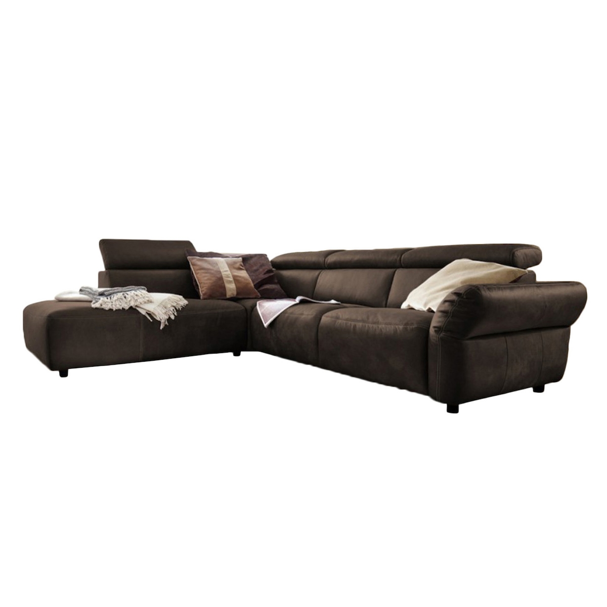 KAWOLA Sofa RISO Ecksofa mit motorischer Sitztiefenverstellung Leder anthrazit Recamiere links